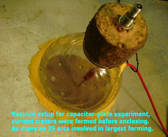 To attempt getting similar sesults with a stronger spark is the intention of the cap-plate experiment. Determining the force requirements involved in forming the various features seen on planetary bodies will help understand the age of bodies scared with craters and other features. Some of the features under consideration would involve discharge energies of incredible ferocity and others may be more subdued by comparrison and occuring on a regular basis giving us the fresh-looking features seen on many bodies. These are the features these experiments are intend to focus upon and hopefully identify in contrast to the others.