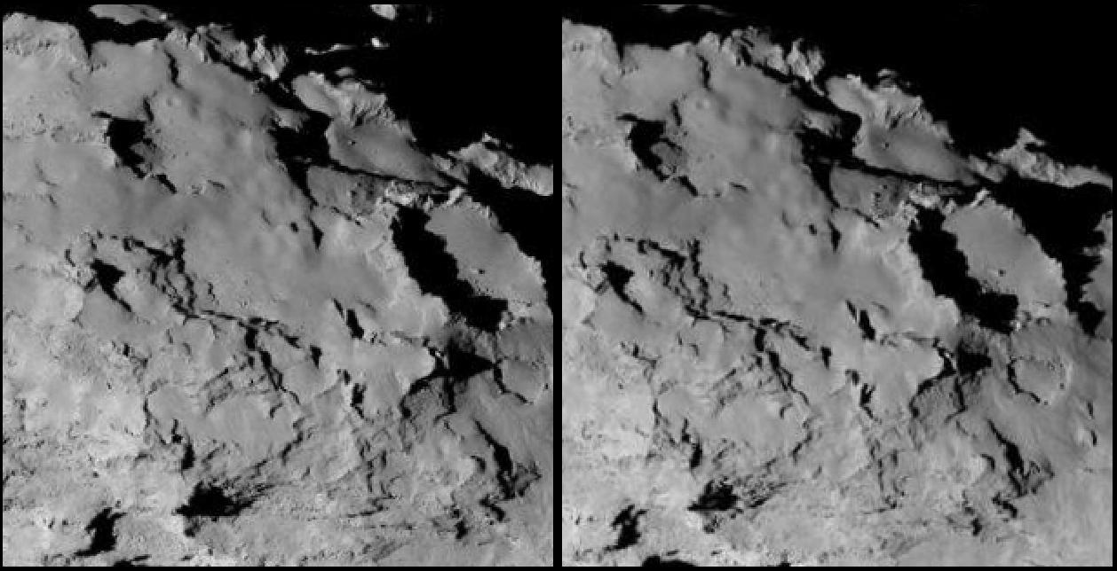 I've done many experiment with electric discharge and the lack of even distribution of rim material in the Rosetta image above might disqualify that process from formation of that feature. However, the four-sided peak to its left and some other adjacent features might have been electrically influenced or even machined.