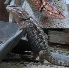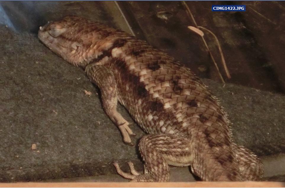 A look at the many images persently in the root directory will be a better introduction than a thousand words for these Tree hanging lizard. Their casual hunting habits and their apparant vision limits makes me wonder how these critters have lived so long. I've lost several to human-caused hazards and i've come to wonder if they aren't more suited to a far different environment than what is currently the norm. Their tollerance for cold is low and they don't like extreme heat. I've seen these at the north rim of the grand canyon so their story takes in more regional conditions and capability than can be observed from one location. And this is made more puzzling when hibernation consideration are added. The observed significant growth of several infants which appeared late last year has me wondering how they spent their winter.. When a couple of them emerged early and didn't get into a warm nesting area for an overnighting they were found inanimate in a bucket where vulnerability was significant. Their growth and activity was highly unlikely so they must have been somewhat active to grow by almost 5 time their pre winter size..