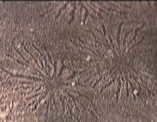 Album 3 is dedicated to the negative spiders that occured dusing the passover-monitor tests. The discharges that formed crater patterns on one monitor also formed negative relief lichtenberg figures (spiders) on the other monitor's screen. The visible characteristics of these spiders give an indication that the discharge was a single pulse and considerably strong In upper right & midl-left image, you will see the spiders that were closely orientated to crater features on the other monitor, image bottom left. I cannot say for sure which spider is the result of a particular crater but the quantity on each screen is close to equal. |