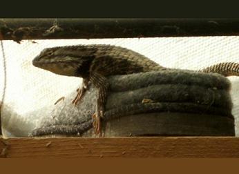 A look at the many images persently in the root directory will be a better introduction than a thousand words for these Tree hanging lizard. Their casual hunting habits and their apparant vision limits makes me wonder how these critters have lived so long. I've lost several to human-caused hazards and i've come to wonder if they aren't more suited to a far different environment than what is currently the norm. Their tollerance for cold is low and they don't like extreme heat. I've seen these at the north rim of the grand canyon so their story takes in more regional conditions and capability than can be observed from one location. And this is made more puzzling when hibernation consideration are added. The observed significant growth of several infants which appeared late last year has me wondering how they spent their winter.. When a couple of them emerged early and didn't get into a warm nesting area for an overnighting they were found inanimate in a bucket where vulnerability was significant. Their growth and activity was highly unlikely so they must have been somewhat active to grow by almost 5 time their pre winter size..