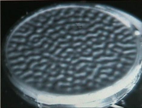 The material on this monitor started out somewhat concentrated in one area and was redistributed as the second monitor was passed in close proximity screen to screen. The features below are from that experiment(the upper monitor), that screen was totally clear before the first pass.
